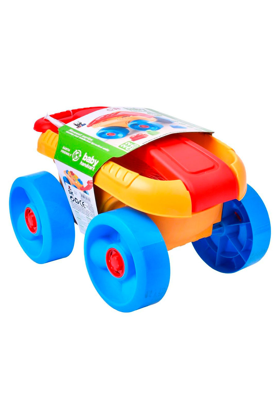 Carrinho de blocos Baby Handcart — divertido e colorido, ideal para os mais pequenos transportarem e construírem! Inclui 22 blocos de encaixe grandes e um carrinho de puxar ou empurrar.