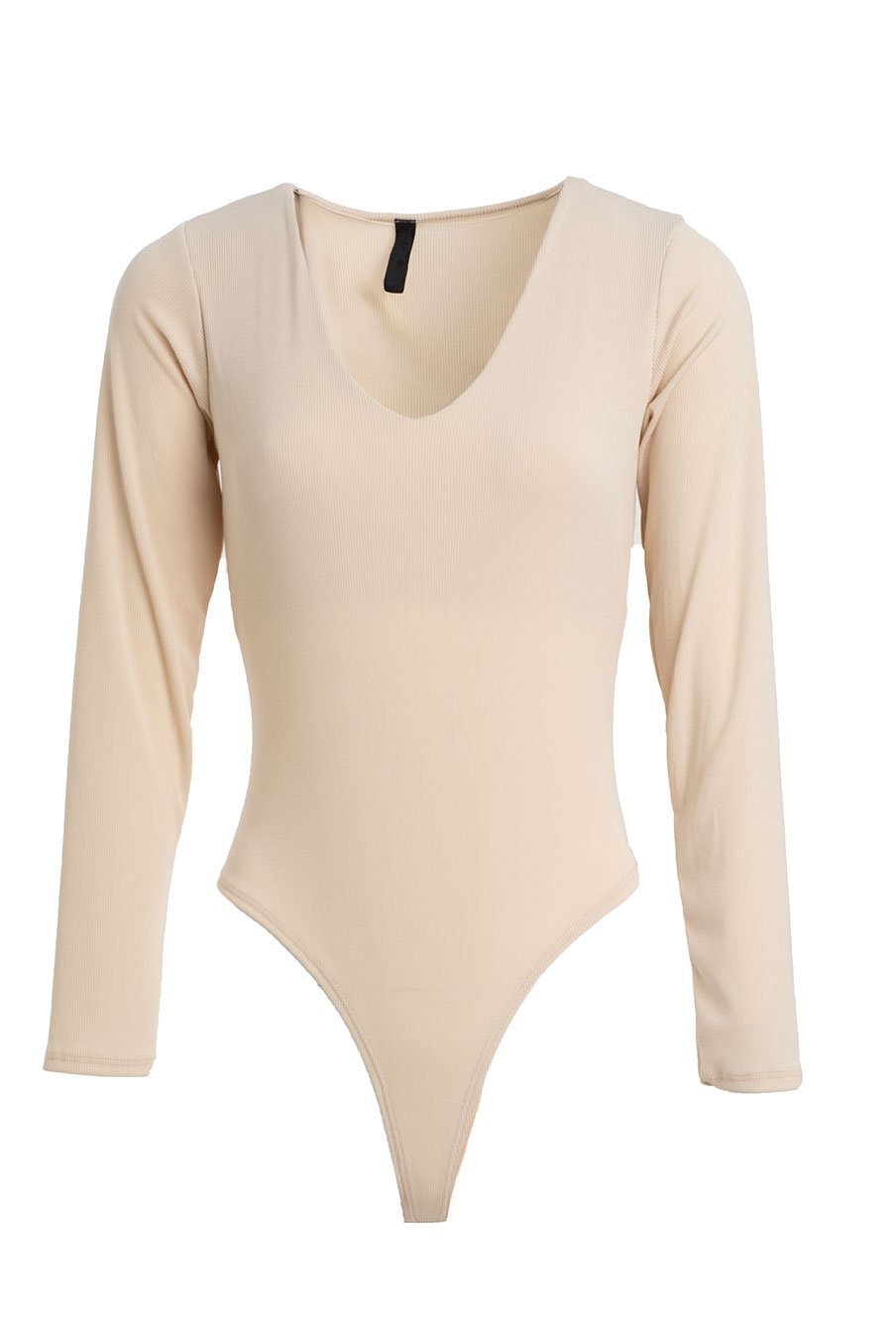 Body justo com decote em V e manga comprida — básico, elegante e sempre útil. Perfeito para criar looks limpos, sofisticados e fáceis de combinar, tanto com jeans como com saias de cintura alta.