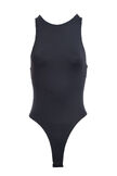 Body sem mangas em tecido elástico, com decote fechado e costas cavadas. Modelo justo ao corpo, confortável e versátil — ideal para combinar com saias, calças ou jeans.