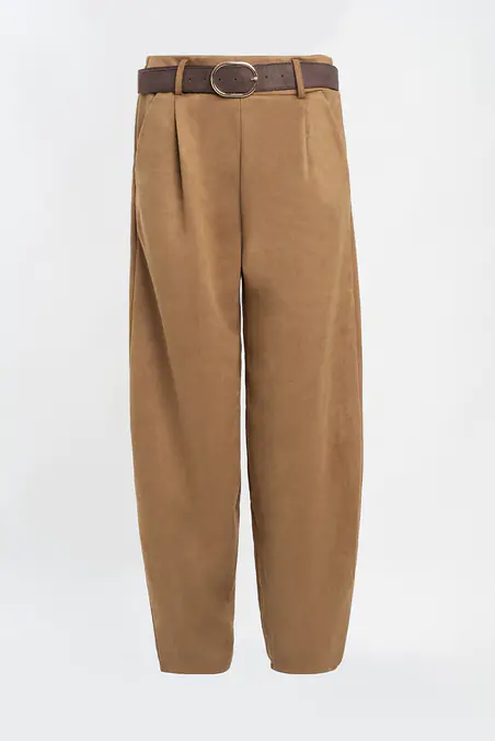Calça abalonada em camurça com cinto