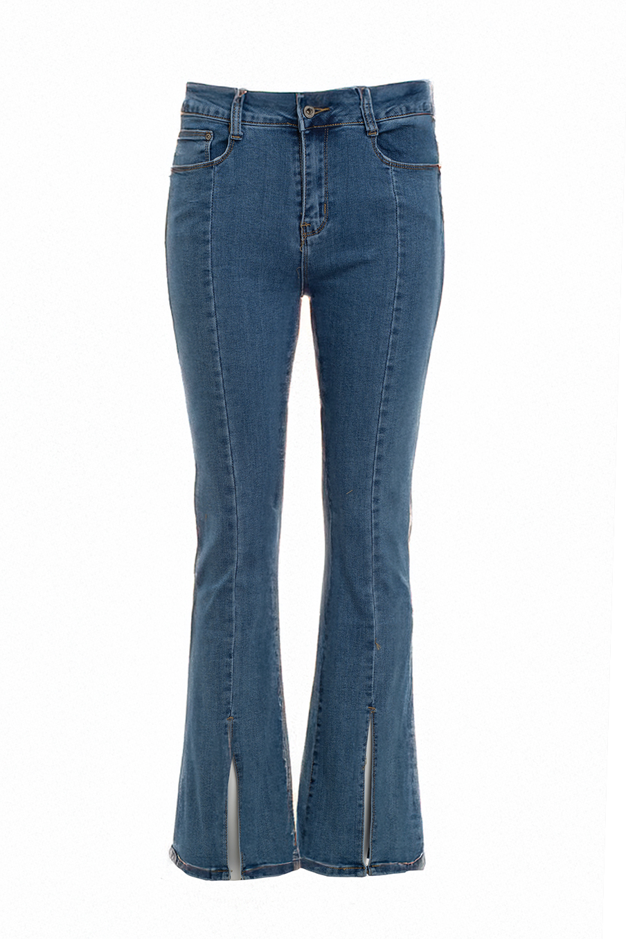 Calça flare, com racha na parte da frente da calça