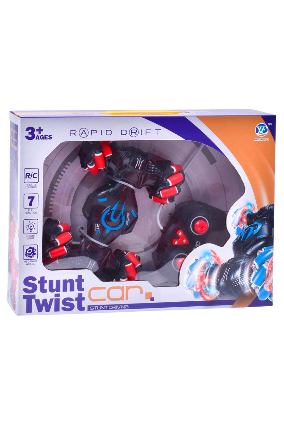 Carro teledirigido Rapid Drift — veículo de controlo remoto com design futurista e rodas multidirecionais que permitem derrapagens rápidas e movimentos em todas as direções. Inclui comando R/C de fácil utilização e luzes brilhantes para uma experiência ainda mais divertida.
