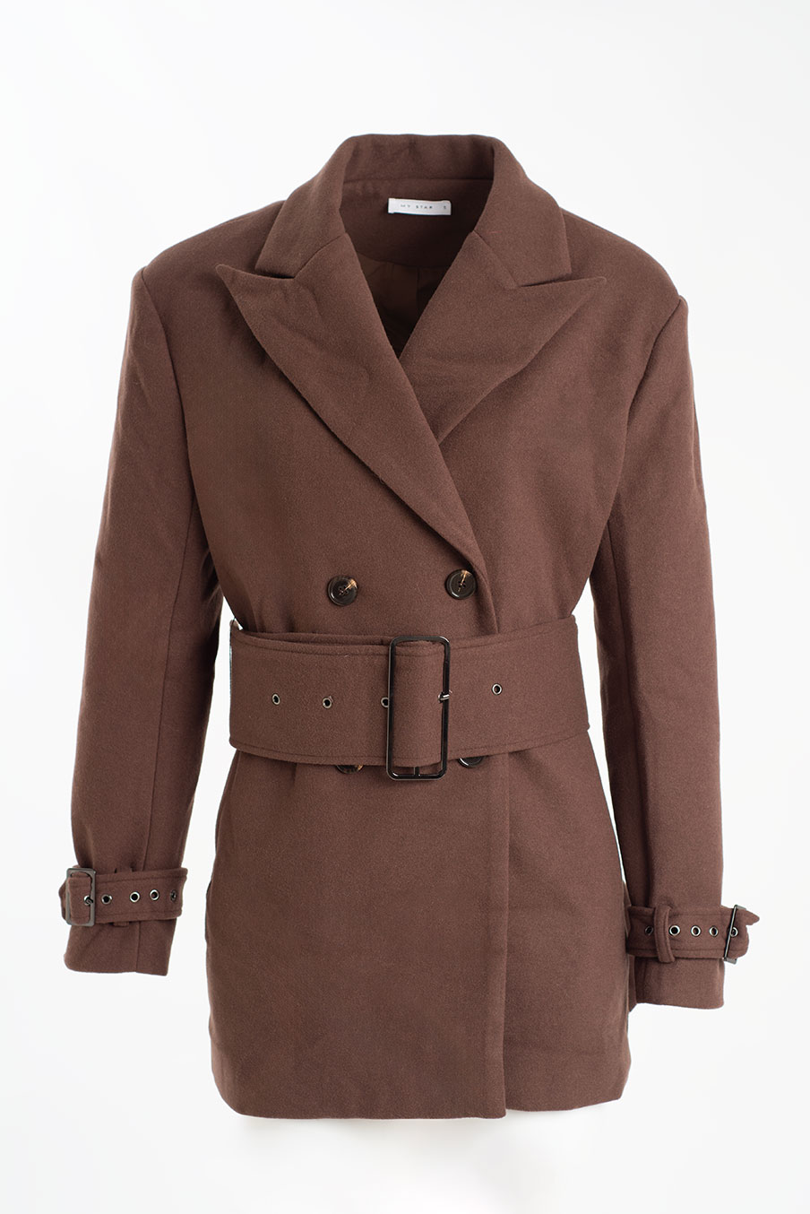 Casaco em fazenda com cinto largo e fecho cruzado — quente, elegante e com um toque clássico. Uma peça essencial para os dias frios, que garante um look sofisticado e cheio de presença.