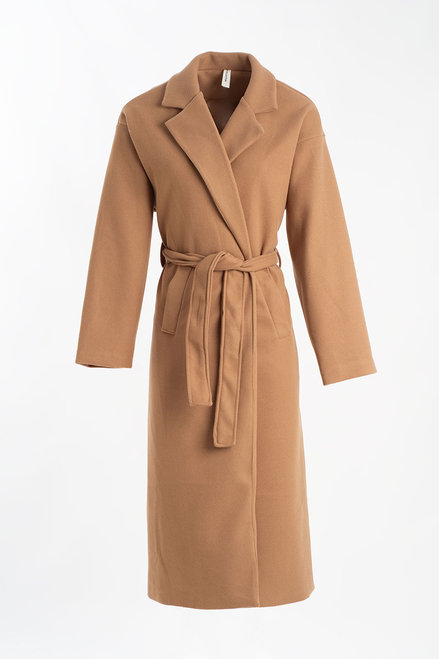Casaco comprido em fazenda com cinto — clássico, elegante e confortável. Uma peça intemporal que complementa qualquer look com sofisticação e um toque de leveza moderna.