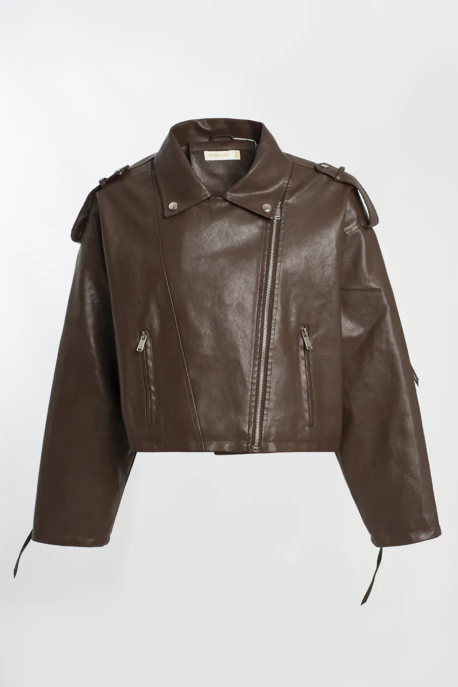 Blusão de napa estilo biker com atilhos lateriais e na costas.
