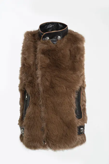 Colete de pelo com bolsos e gola em napa com botões Navy