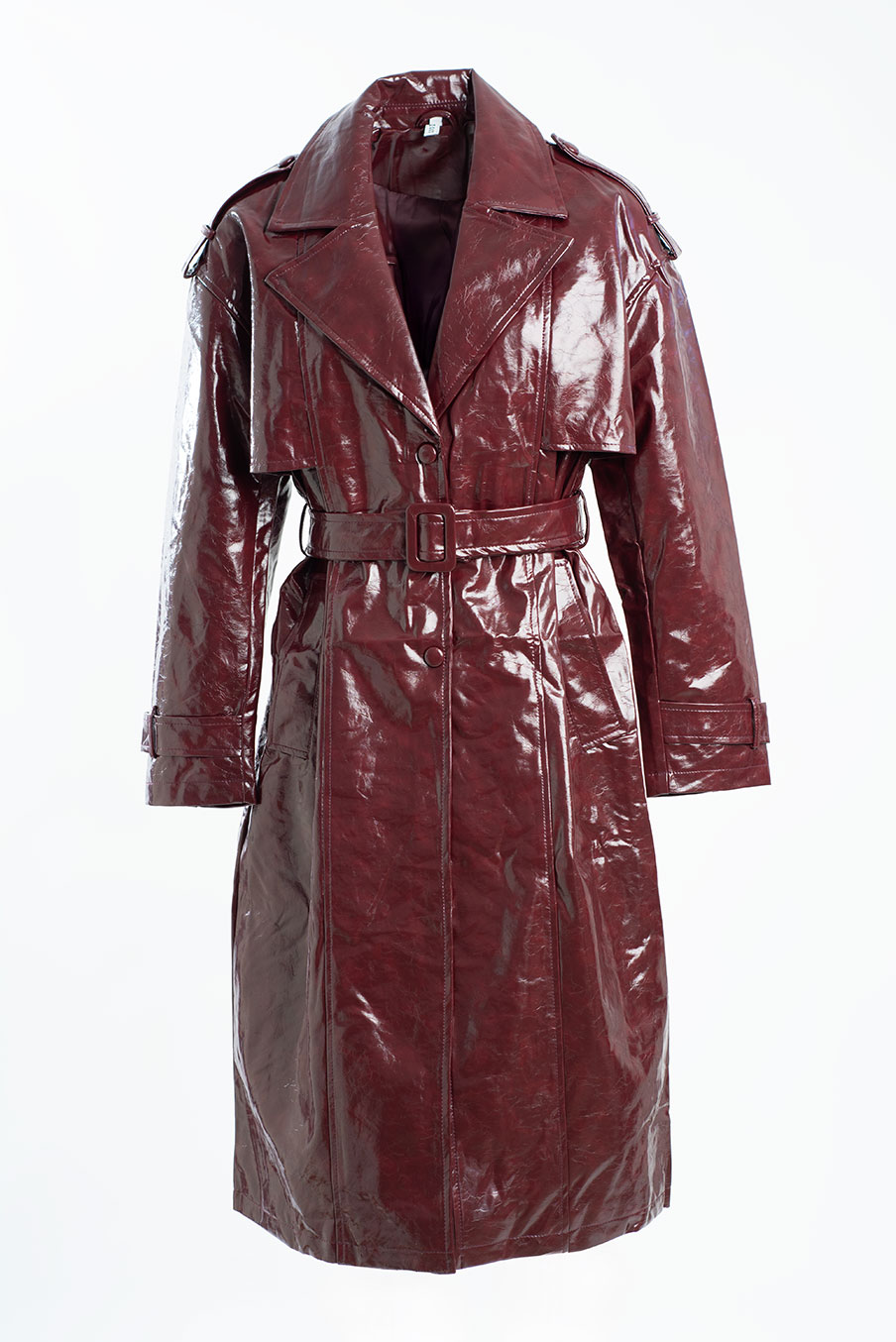 Trench coat em efeito vinil com cinto ajustável — marcante, moderno e cheio de personalidade. Uma peça que transforma qualquer look com um toque de ousadia e elegância urbana.
