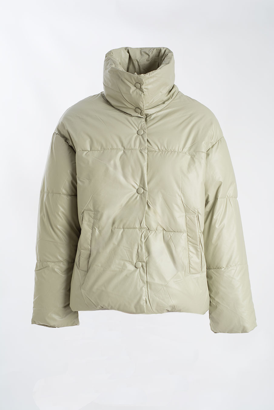 Casaco acolchoado com fecho de pressão e gola alta — leve, quente e confortável. Uma peça essencial para os dias frios, que combina estilo urbano com máxima proteção térmica.