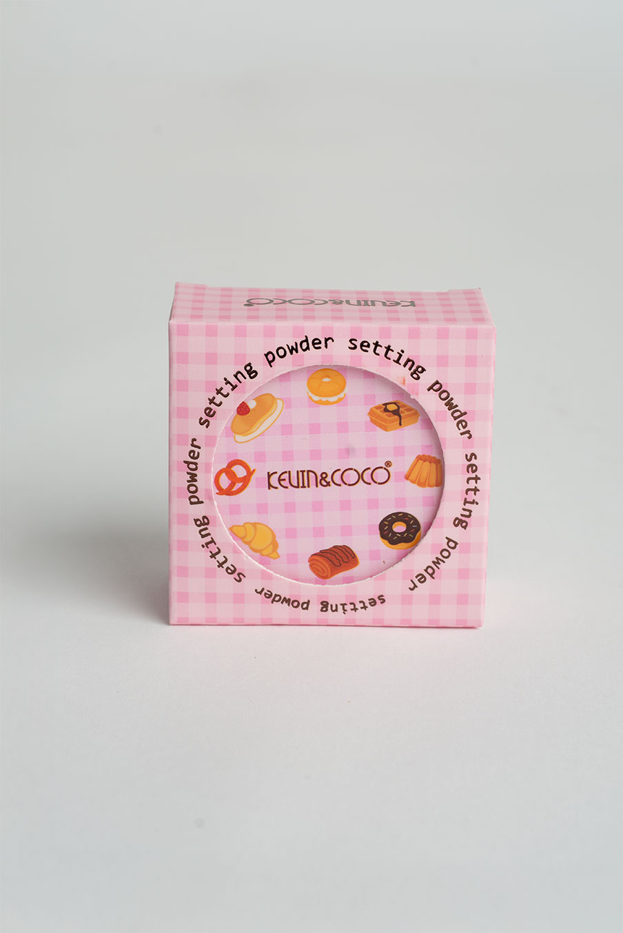 Kevin & Coco Setting Powder — pó fixador com textura leve e acabamento suave que prolonga a maquilhagem e controla o brilho ao longo do dia. Ideal para deixar a pele com um toque aveludado e natural. Embalagem divertida e irresistível, inspirada em doces — perfeita para completar o teu kit de beleza com estilo. 🍩✨