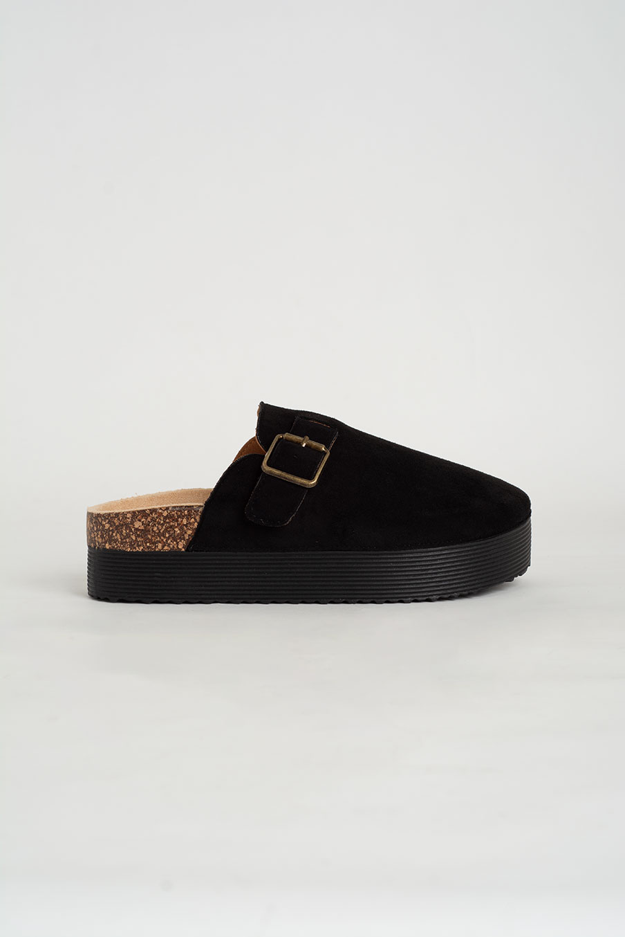 Tamancos estilo clog, perfeitos para um look casual e descontraído. O modelo em camurça sintética conta com fivela metálica ajustável e sola anatómica para maior conforto no dia a dia.