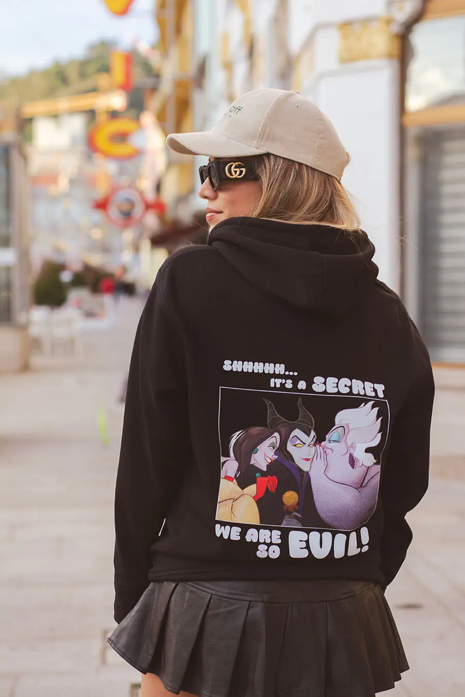 Um hoodie marcante e cheio de atitude com as vilãs mais icónicas da Disney — Maléfica, Úrsula e a Rainha Má — unidas num momento secreto e cheio de mistério. Uma peça forte, divertida e perfeita para quem adora um toque de irreverência com glamour “evil”.