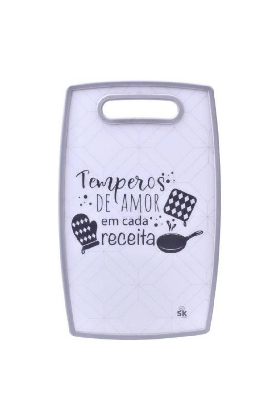 Esta tábua de cozinha une funcionalidade com um toque decorativo e inspirador.