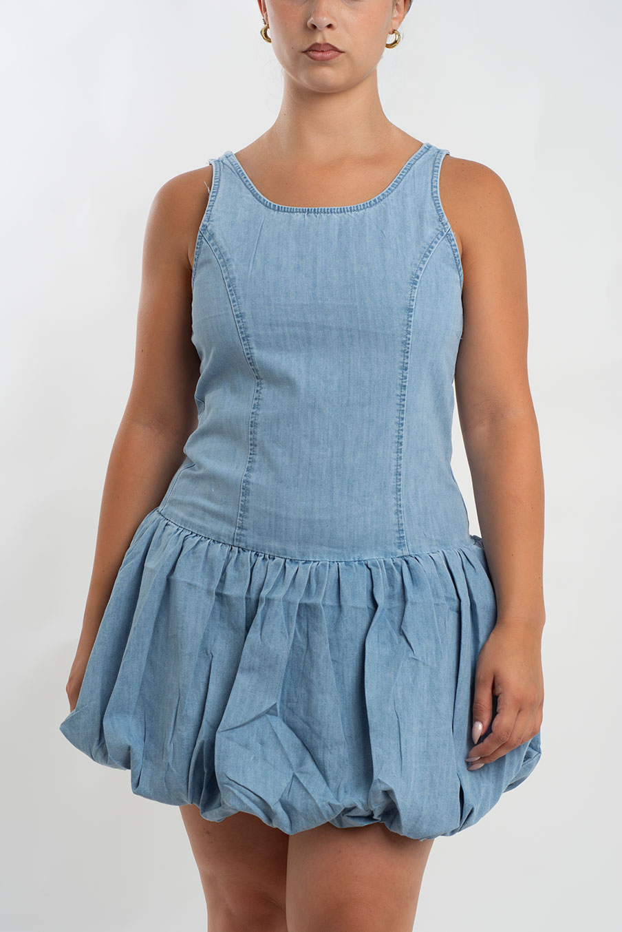 Vestido Balonê jeans. Oferecendo assim uma estrutura sem perder a fluidez.