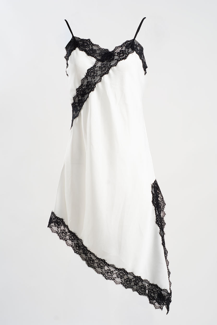Vestido de alças finas com acabamento em renda — leve, sensual e cheio de atitude. Uma peça versátil que pode ser usada sozinha ou combinada com sobreposições para um look ousado e moderno.